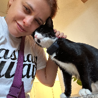 Hello, I’m Anna and have a cat called Sofito Peebly Alcázar (long story!) I live in Highams Park and can drive. We’ve had Sof for 3.5 years, he loves brushes and being a naughty little guy! I’ve been loving meet everyone’s kitties, making friends with shy ones and playing with energetic pals. Before joining CiaF, I cat-sit for an old lady cat called Blossom who was very grumpy and my friend’s kittens who were very tiny and boisterous so I have a good range of experience with cats 😸